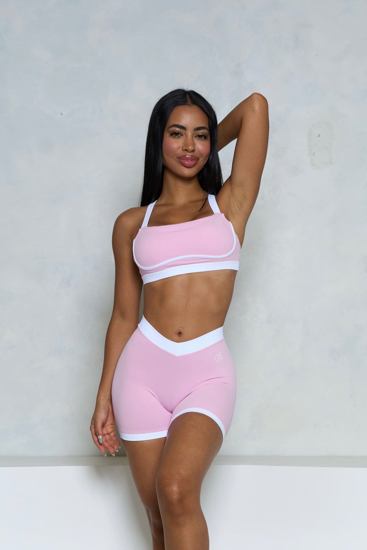 Light Pink and White V-Waist Scrunch Butt Shorts