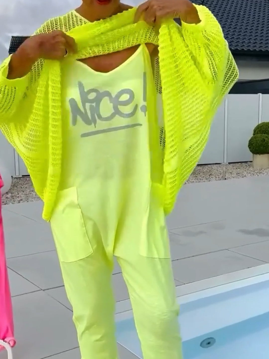Letter-print Jumpsuit and Cutout Cover-up Casual Set